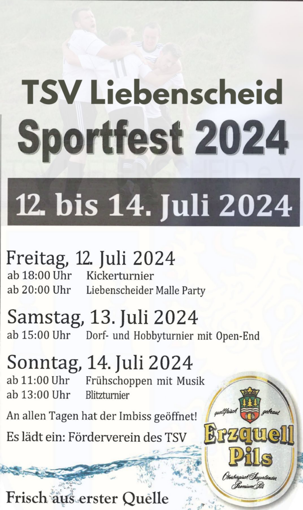 Auch in diesem Jahr findet wieder unser traditionelles Sportfest mit Dorf- und Hobbyturnier und fröhlichem Feiern statt. Dazu laden wir herzlich ein.
