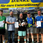 Das Sportfest begann am Freitag mit einem erstmalig ausgetragenen Kickerturnier, das mit seinen 18 motivierten Teilnehmern für einen erfolgreichen Start sorgte. Die 2er Teams wurden vor Ort ausgelost. Interessante Paarungen sowie ein Mix aus jung und alt versprachen ein spannendes Turnier. Nach einem packenden Wettbewerb triumphierten Hubert Goubeaud und Sven Schürg, die sich im Finale mit einem Comeback durchsetzen konnten und den Turniersieg einfuhren. Herzlichen Glückwunsch!