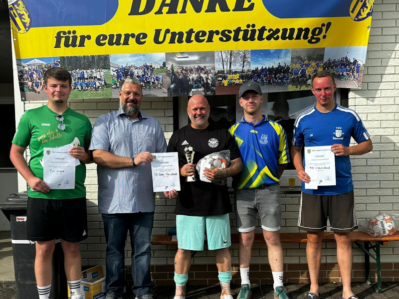 Am Samstag war das Dorf- und Hobbyturnier das Highlight des Tages. Ab 15:00 Uhr füllte sich das Spielfeld mit acht Thekenmannschaften. In einem stimmungsvollen Turnier standen sich im Finale die „Lützelner Alm“ und „Dick und Durstig“ gegenüber, bei dem „Dick und Durstig“ letztendlich mit 2:1 gewann – so schnappten sich einige TSV’ler den Turniersieg, die unter anderem Teil des Siegerteams waren. Auch an der Theke wurde ein Sieger ausgemacht: Die „Löschzwerge Liebenscheid“ konnten sich verdient den Trinkerpokal sichern. Herzlichen Glückwunsch an beide Mannschaften!