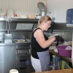 Schon am Nachmittag hatten die Turnerfrauen des TSV für Kaffee und Kuchen gesorgt und der Imbiss war während des ganzen Wochenendes geöffnet. Hier gab es Gyros und Currywurst – alles äußerst lecker. Die Schwerstarbeit im Imbiss leistete Beate Göbel mit Nicol und Nicols Vater.